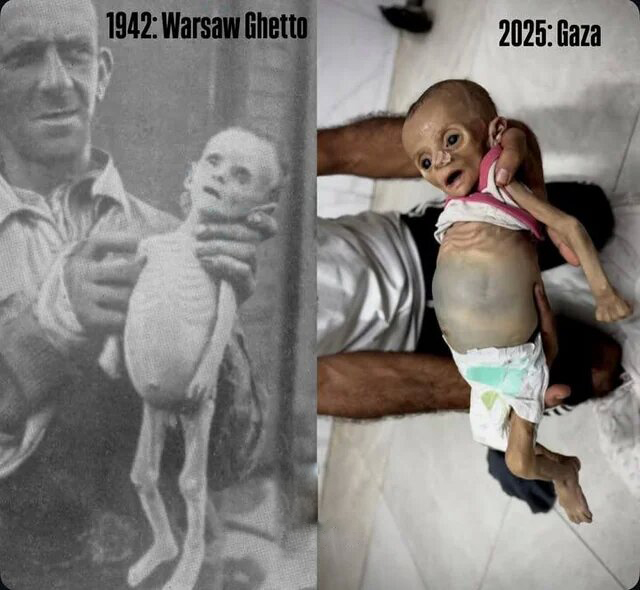 As a result, much of Gaza (up to 80%) was dependent on humanitarian aid before 10/7. A warning of famine was put out months ago. Israel then broke another ceasefire before putting a total restriction on incoming aid, by which time they’d long already flattened Gaza’s industrial and agricultural infrastructure to the ground. It stands to reason then for anyone with a functioning brain that, yes, of course there’s famine*. Of course we didn’t need any further visual evidence. What kind of disgusting lunatics would even try to “debunk” it? The kind that know their team is responsible.